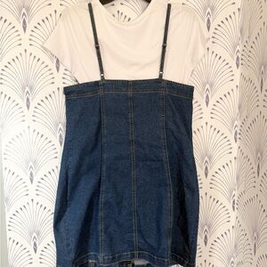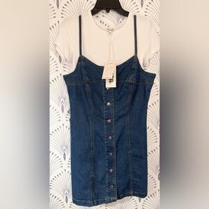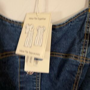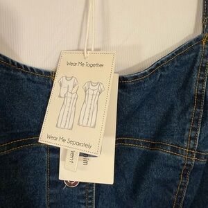 Blue Midi Denim Dress with Sweetheart Neckline
