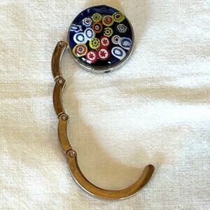 Blue Millefiori Glass Purse Hook With Foldable Metal Design