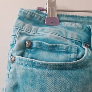 Bleached LoveSick mini-shorts. Low rise.
