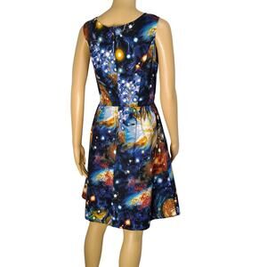 Blue ModCloth Fervour Dress Galaxy Fit & Flare Back Zipper Sleeveless Size Small