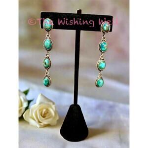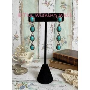 Blue Mohave Turquoise Long Dangle Earrings 2.5”