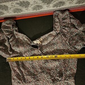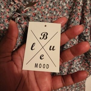 Blue Mood Floral Tie Back Short Sleeve Blouse Size L NWT
