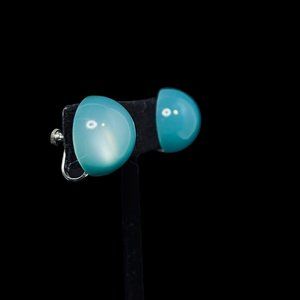 Blue Moonglow, Silver Tone And Rhinestone Necklace & Screw Back Earrings (4862)