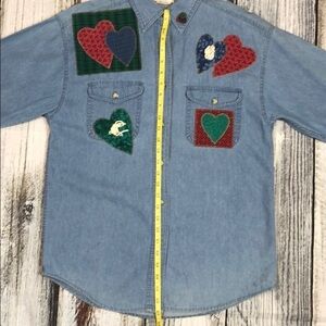 Blue Mountain Embroidered Denim w/ Hearts Sz S