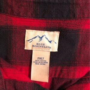 Blue Mountain Mens 2XLT Red and Black Check Print Flannel Shirt Button Up L/S