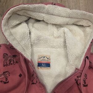 Blue Mountain Pink Horse Print Womens XL Sherpa Zip Up Sweatshirt Hood Vtg