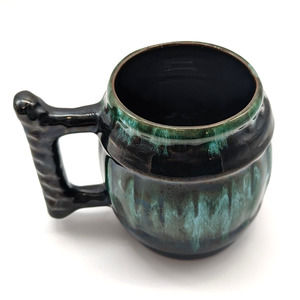 Blue Mountain Pottery Barrel Mug with Handle Drip Glaze Redware Mid Century