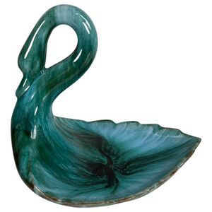 Blue Mountain Pottery Green Marble Glazed Swan Trinket Dish Ceramic Vintage