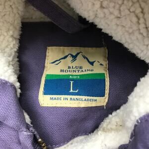 Blue Mountain Sherpa Lined Duck Canvas Jacket Hoodie Girls Youth Size Large L Long Sleeve Full Zip Pockets Purple