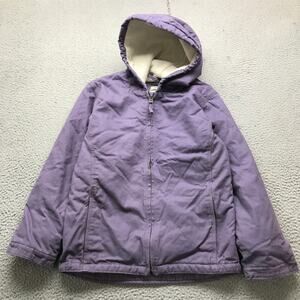 Blue Mountain Sherpa Lined Duck Canvas Jacket Hoodie Girls Youth Large Purple