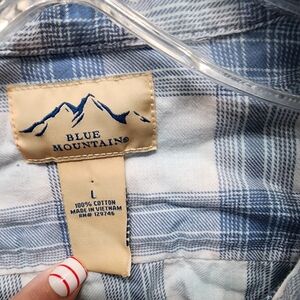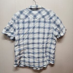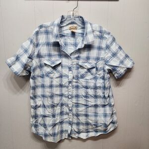 Blue Mountain Shirt Large Button Front Short Sleeve Blue Casual Plaid B725