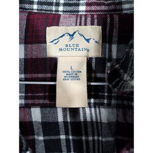 Stay cozy and stylish with the Blue Mountain Women's Long Sleeve Flannel in size large. This black, burgundy, and white flannel is made from soft, durable cotton.