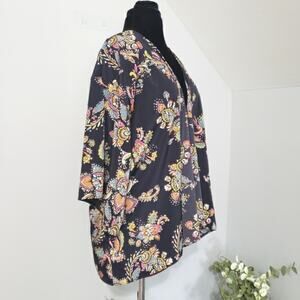 Blue Multi Color Floral Half Sleeve Open Cardigan Kimono Size Medium