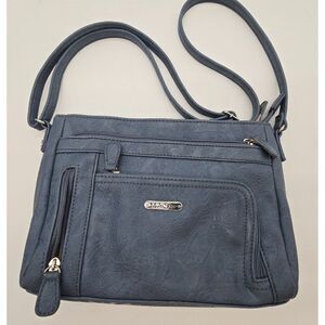 Blue MultiSac Crossbody Bag With Floral Embossed Pattern & Multiple Zipper Pocke