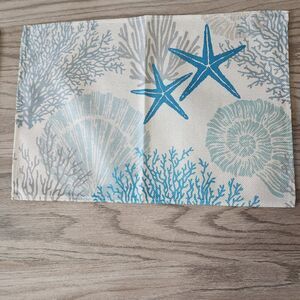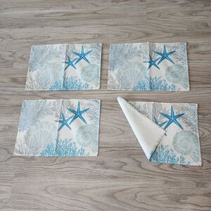 Blue Nautical Placemats Starfish Seashell Coral Tropical Summer Set of Four New