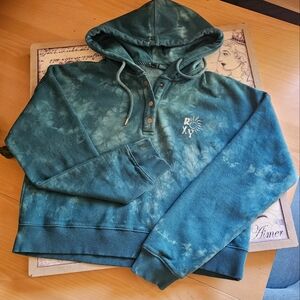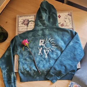 Blue New Roxy Tie Dye Hooded Cropped Sweater