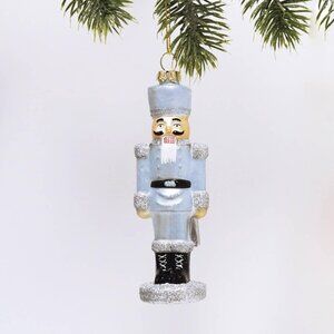 Add a touch of classic beauty to your holiday decorations this year with the Blue Nutcracker Glass Ornament. This gorgeously hand-painted ornament brings a sense of luxury and timeless style to any space, making it an exquisite addition to your tree or mantelpiece. Its size makes it perfect for small spaces while still adding a spark of festivity, featuring a delicate touch of light pink and rose gold glitter that is sure to delight all who see it. The Blue Nutcracker Glass Ornament is expertly crafted with high-quality imported glass and designed in the USA, so you can trust it will be an elegant staple of your holiday decor for years to come. It's also boxed for easy gifting, ready to hang with its pre-attached metallic string, making it the perfect surprise for friends and family as well! 1.5” x 1.5" x 5.25" Glass Hand Painted Boxed for easy gifting! All ornaments come ready to hang with metallic string attached. Designed in the USA; Imported