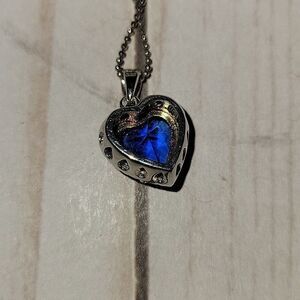 Blue Obsidian & Cubic Zirconia Platinum over 925 Silver Heart Pendant Necklace