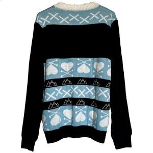 Blue October Band Shirt Ugly Christmas Sweater Hard To Find Shirt Size Medium. Blue & black stripes with white heart skull & crossbones & mountains. Holiday winter limited edition knit relaxed fit sweater. Length 26.5”, chest 44”.