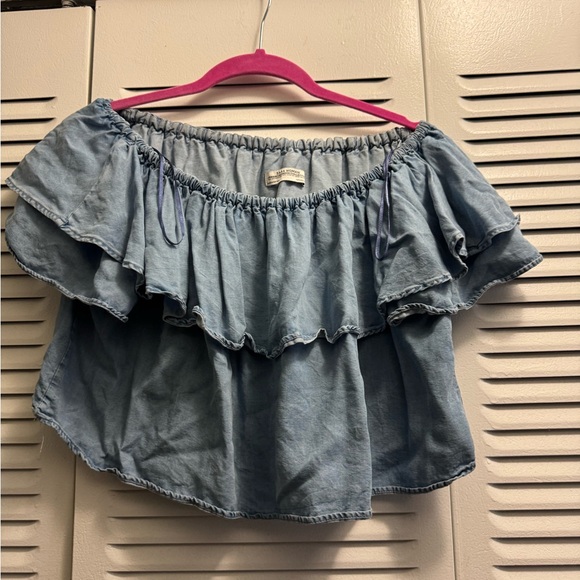 Stylish off-shoulder blouse with ruffle detail. Perfect for casual wear.