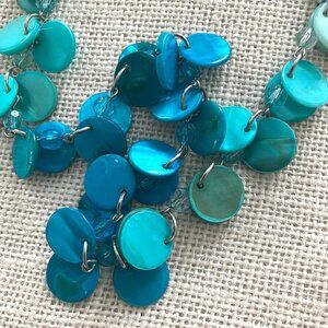 Blue Ombre Capiz Shell Necklace Dangle Costume Jewelry Coastal