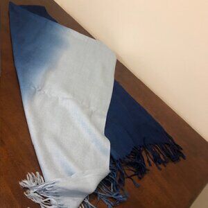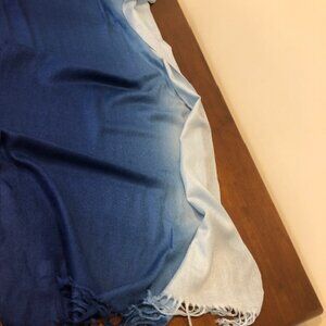 -Beautiful blue wrap in ombre shades of blue and white. Fringe ends.