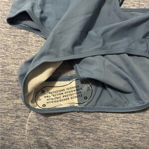 Stylish blue one-piece swimsuit with a unique cut-out design. Perfect for beach days. Women’s size XL. New with tags.