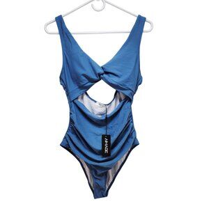 Blue One-Piece Swimsuit Knot Front & Cutout Detail Adjustable Straps Size