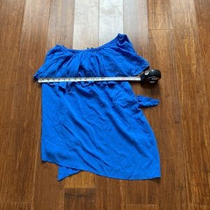 Elegant blue one-shoulder blouse with ruffle detailing. Perfect for a stylish and comfortable look. Washed it but never wore it!