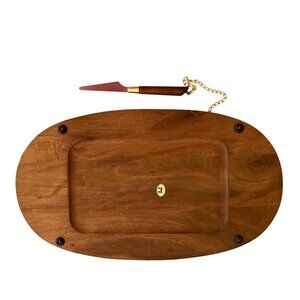 This vintage cheese board set features a wooden base with a ceramic inlay and a matching knife, adding elegance to any dining experience.