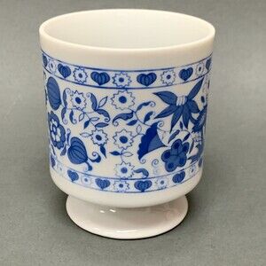 Blue Onion Pattern Coffee Cup Blue White 3 3/8" high