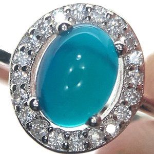 Blue Opal 1.02ct Platinum Finish Solid 925 Sterling Silver Ring