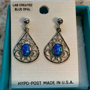 Lab Created blue opal pierced earrings with hypoallergenic posts. Never worn, brand new. Display box not included.