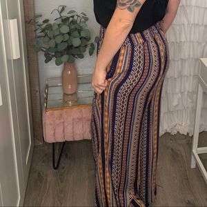 Bright, bold and fashion statement wide leg pants are LITERALLY everything you’ve wanted in a pair of pants. These wide leg pants are so comfy, but styled to be made for dressed up events! Made with pockets, lightweight and look just like a maxi skirt but are pants. The smocked elastic waist is perfect and comfortable.