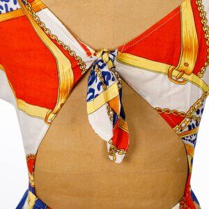 Blue Orange Printed Colorful Flowy Maxi Dress XSmall