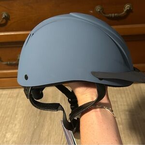 Stylish blue riding helmet with a sleek design. Brand new! With tags.