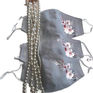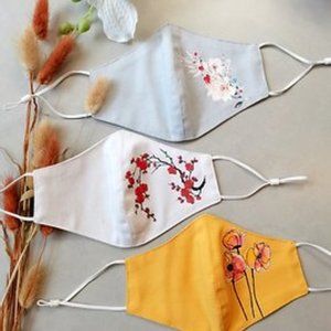 Painted Linen Face Mask, 3 layers, a linen layer, extra non woven interface layer, a fabric lining layer w/ pocket.