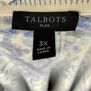Blue Paisely Thinner Talbots Sweater with a wavy cut around the neck