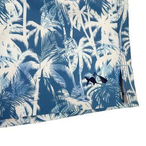 Dive into style with these blue palm print swim trunks. Perfect for any beach adventure.