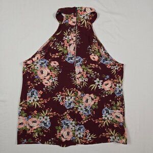 Blue Pan Halter Neck Floral Pleated Front Blouse Womens M Burgundy Pink Y2K Vibe