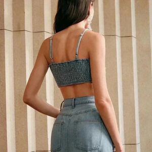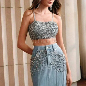 Blue Party Women's Fashion Luxury Beaded Denim Camisole Top