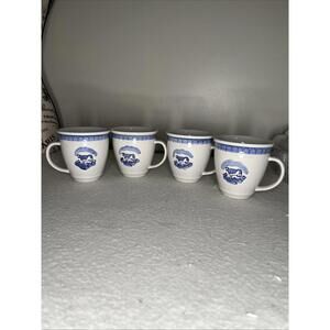 Blue Pastures Folkcraft Stoneware Mugs Cow Coffee Set Of 4 Country Farm Cottage