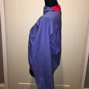 The most cutest raincoats ever the style that no one has its blue and a red collar it has a zipper in the front and its size M women's!!!