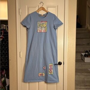 The Cite Women’s Short Sleeve Light Blue Maxi Cotton Dress in size M is a stylish and comfortable option for the summer and spring seasons. This solid-colored dress features a round neckline, pullover closure, and long length, making it perfect for warm weather days. Made of breathable cotton material, this dress is ideal for staying cool and chic during the warmer months. P2P 21, L 47.