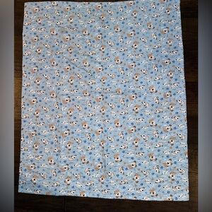 Charming blue patchwork quilt featuring colorful dog patterns. Perfect for adding a playful touch to any room. I believe it’s 3 yards