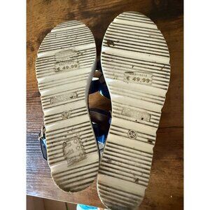 Blue Patent Leather Platform Sandals With Adjustable Strap & White Sole Size 7.5