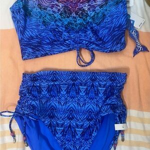 Dive into style with this vibrant blue patterned bikini set. Perfect for a day at the beach or pool.