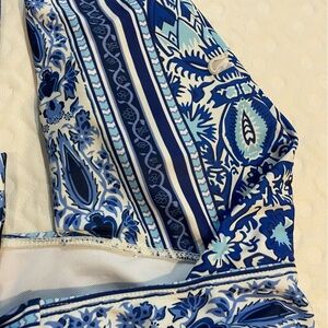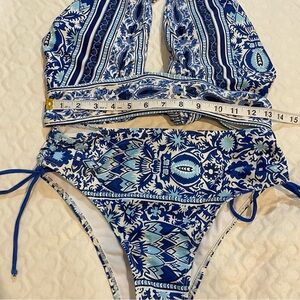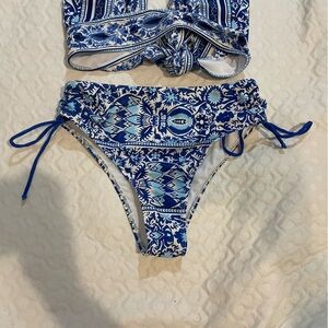 Blue Patterned Bikini Set Tie Top and Bottom Medium Aztec Beach Pool Summer