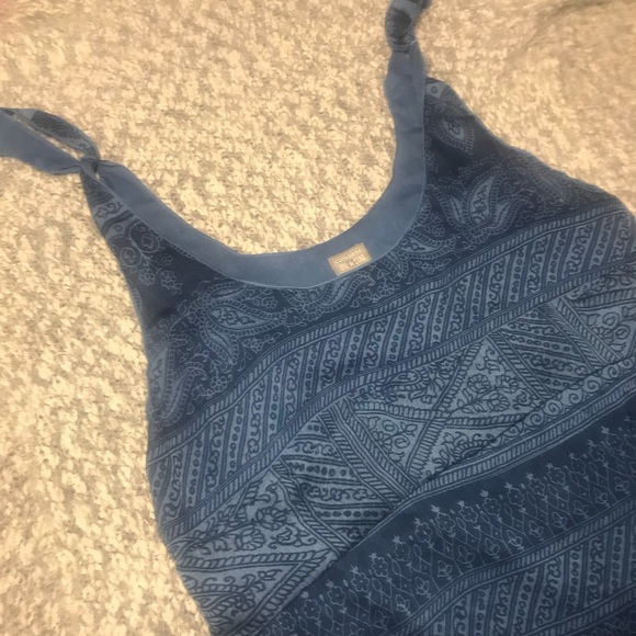 It is a patterned blouse with two layers and tied straps. It is converse brand and is cute with leggings and jean jacket. A casual blouse never worn. Runs slightly bigger than sized.
