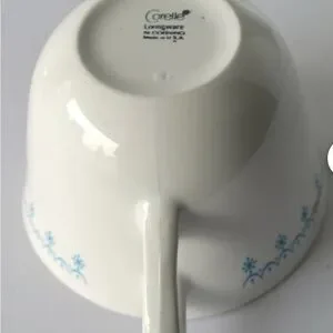 Vintage 1970s Corelle snowflake blue coffee mugs. Set of four.